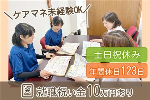 土日祝休み、年間休日123日◇就職祝い金10万円の支給あり☆定年65歳★教育カリキュラムが充実♪賞与実績3.5ヶ月分♪未経験OK◇【名古屋市西区・浄心駅・居宅介護支援事業所・ケアマネジャー・正職員】
