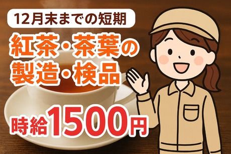 仕事内容 ■12月末までの短期×時給1500円♪ 紅茶の香りに包まれながら働ける、人気の軽作業ワーク! 【お仕事内容】 紅茶・茶葉の ◎ 投入作業(機械へのセット) ◎ 検品(異物混入やパッケージ不良のチェック) ◎ 充填(決められた量を容器に詰める) ◎ 清掃(作業台や機械まわりを拭き掃除) 作業はシンプル&丁寧なマニュアルあり♪未経験の方も大歓迎! 【おすすめポイント】 ●紅茶の香りに包まれる癒しの職場♪ 紅茶・茶葉の扱いだから、作業中もリラックスした雰囲気! ●シンプル&軽作業がメイン! 投入・検品・充填などは丁寧なマニュアルあり◎未経験の方も安心♪ ●短期でしっかり稼げる! 時給1500円&12月末までの期間限定!Wワークにもピッタリ♪ ●冷暖房完備&清潔な作業環境! クリーンな工場内で快適に働けるから、夏場でも安心。 ●幅広い年齢層が活躍中! 20代~50代までのスタッフ在籍。落ち着いた職場で人間関係も◎