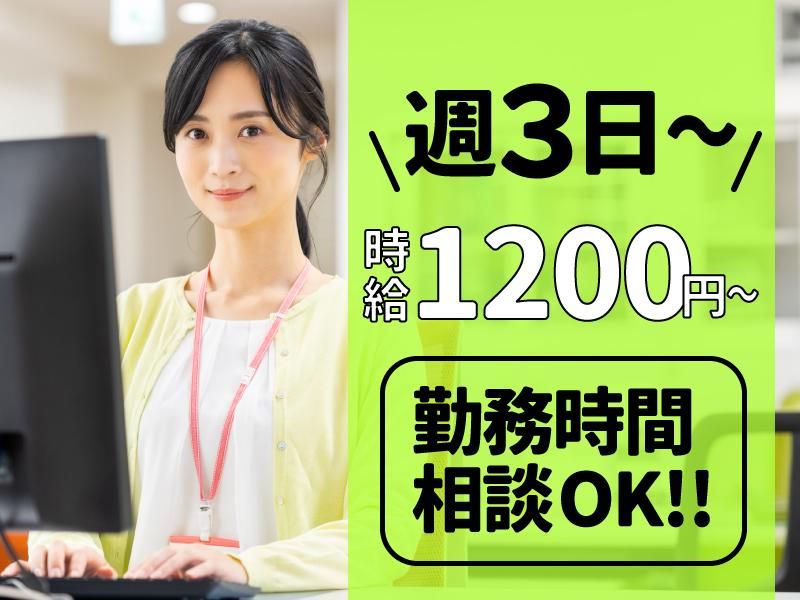 勤務時間詳細 09:00~17:00(休憩1時間) ★時間相談OK ★週3日~または週5日〜 など勤務日数の相談もOK
