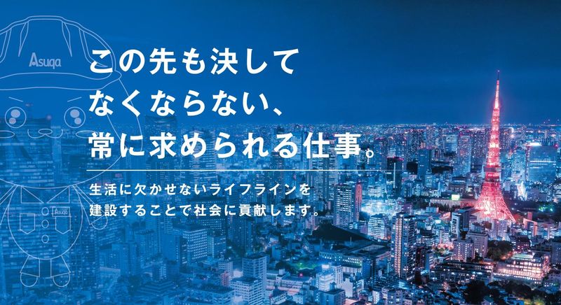 求めている人材 【必須】 ・自動車運転免許(AT限定可) ・35歳以下(長期キャリア形成のため) <こんな方にもピッタリ> ・社内外ともにコミュニケーションを円滑に取れる方 ・受け身ではなく、積極的に行動できる方 ・自分の意見を相手に明確に伝える能力 ・向上心と責任感を持ち、最後まで諦めずに取り組める方 ・常に学ぶ姿勢がある方 \こんな資格も活かせます/ 一級建築士、二級建築士、宅建、施工管理技士、土木施工管理技士、電気工事士二種、電気工事士一種、電気工事施工管理技士、建設機械施工技士、管工事施工管理技士など ※ほかにも国家資格や免許をお持ちの方は優遇! ───────────── ■人事担当へインタビュー!■ Q.【あすか創建の強みを教えてください】 稲城事業所には実習設備があり、現場と同じ状況で練習ができるので、安心して技術を習得できます。 更に、社員の入社年数のステップごとに、成長度合いに応じた教育の機会を設けており、常に成長できる環境です。 Q.【文系でも入社できますか?】 理系も文系も関係ありません! 学生生活は数年程度ですが、仕事は40年という長い期間に渡ります。 もちろん学生生活で学んだ事が活きる場面はあると思いますが、会社に入って新しい環境の中で学ぶ事で、しっかりと自分のチカラになると思っています。 Q.【働きやすさについて取り組んでいる事はありますか?】 正直にお伝えすると、どうしても現場中心の仕事になりますので、時間の裁量をキッチリ決めることは難しい事もあります。 どうしても残業が発生したり、お客さま都合のため休日出勤になる日もあります。 ただし、様々なITツールを駆使して業務効率化を図るなど、社員の働きやすさ、効率化のためなら新しいものを取り入れていきます。 年齢の条件と理由:あり(例外事由3号のイ・35歳未満(長期勤続によるキャリア形成のため))