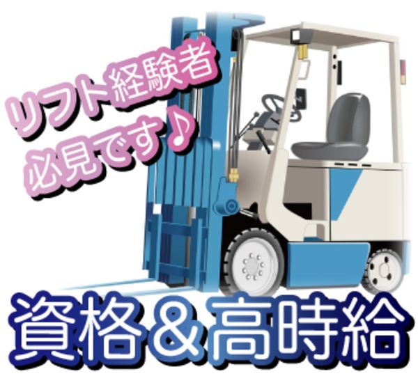 仕事内容 :+:✽・-・✽:+:✽・-・✽:+:✽・-・✽:+:✽・-・✽:+: 【 ⏰️ 業務について ⏰️ 】 守山市にある、大型の物流倉庫でのフォークリフト作業になります。 フォークリフトはカウンター・リーチ(プラッター)どちらの乗務もあります ◆トラックからの荷下ろし・積込み作業 ◆荷降ろし、仕分後に倉庫内所定位置への格納作業 ◆倉庫内からのピッキング作業 ◆発送品の仕分・送り状貼り付け・積込み準備 物流倉庫での作業となりますので、ガッツリとリフト乗務がメインになります。 :+:✽・-・✽:+:✽・-・✽:+:✽・-・✽:+:✽・-・✽:+: 【 ⏰ 採用担当より ⏰️ 】 [おすすめPOINT] 1600円の高時給 20代,30代,40代,50代スタッフ活躍中 リフトも作業も良いバランスの仕事 転職をお考えの方 新たな場所でチャレンジしたい方 そんな方、まずはお気軽にご連絡下さい~♪ :+:✽・-・✽:+:✽・-・✽:+:✽・-・✽:+:✽・-・✽:+: