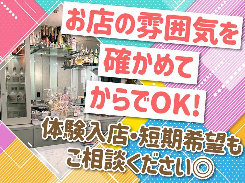 求めている人材 <こんな方大歓迎!> ・ナイトワークデビュー ・ノルマなしで働きたい ・お給料は即日払い希望 ・スキマ時間を活かして無理なく働きたい ・ガッツリ働いて稼ぎたい ★経験者の方は優遇します! 未経験者の方も大歓迎! ナイトワークが初めての方も応援します。 既婚者さんやフリーターさん、 Wワークや会社員の方もOKです♪ 短期で働きたい方も大歓迎! もちろん、長期で働きたい方も お待ちしています◎ 年齢の条件と理由:あり(例外事由2号・20歳以上(健康増進法/喫煙スペースがあるため))