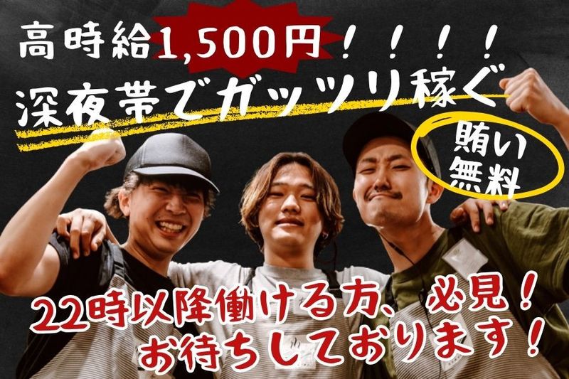 ⭐高時給1,500円~✅フリーター必見✅深夜帯✅週4日・1日4時間~✅賄いあり