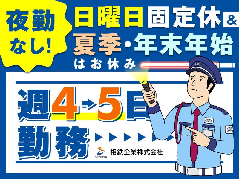 仕事内容 / 50代60代のミドルシニア男性活躍中! \ ・●〇――――――――――――〇●・ 長期安定×週4~5日勤務 大学の校内警備スタッフ ・●〇――――――――――――〇●・ □■求人のオススメPOINT■□ ◆夜勤ナシ◎週4日~で無理なく働ける ┗日勤のみだから生活リズム安定◎ ◆未経験歓迎!セカンドキャリアも◎ ┗研修で安心スタート♪ ◆日曜固定休でプライベートばっちり◎ ┗他にも夏季、年末年始など休暇有 ◆「石川町駅」元町口から徒歩10分 ┗交通費全額支給で無駄な出費ナシ♪ 「警備の仕事をしたことがない」 「ブランクがあって不安」 そんな方も大丈夫です!! ベテランスタッフが多く在籍しているので サポートします!! わからないことや不安なことなど、 周りのスタッフにお尋ねください* □■具体的な仕事内容■□ ・施設内巡回 ・立哨警備 ・モニター監視 ・門の開閉業務 ・来館者受付対応 ・PCを使った報告書作成 など □■ 法定研修3日間 ■□ 大和市・2日間(9時~18時) その後現地にて1日間※同条件 ──────────────────── <スタッフインタビュー/60代男性> 定年退職しましたが、まだまだ 元気なので「セカンドキャリア」に 何か始めたいと思っていました。 そんな時にこちらの警備スタッフの こちらの求人を見つけました。 警備の仕事は未経験でしたが、 せっかくの機会なので 新しい仕事にチャレンジしよう!と 思い切って応募しました。 入社してみると、自分と同じように 未経験スタートの方が意外と多くいて ホッとしました(笑) 研修がありますし、 業務を丁寧に教えていただけたので 安心して始められました。 「まだまだ新しいことに チャレンジできるんだ!」と 自信にもなりましたし、 仕事を始めてよかったです! ============ 相鉄企業株式会社について ============ 昭和36年、ビルの清掃管理業務を メインに設立。 現在は従業員数約2000人の規模に成長し、 鉄道会社を母体とした相鉄グループの 企業という安定性があります。 ビルメンテナンス業の他、 環境サービス業・設備工事業 指定管理者業務・不動産賃貸業なども行い、 生活に密着したサービス お客さまのニーズを捉えた 裾野の広いサービスを提供し、 地域社会の発展に貢献しています。