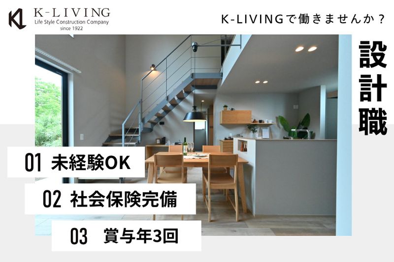 【仕事内容】 お客様にとって快適な空間で楽しく、住み心地の良いお家を実現しませんか? 高性能・デザイン性・自然素材をすべて掛け合わせた注文住宅(K-LIVING)と規格住宅(jigsaw)を建てています! そのため、高性能とデザイン性、自然素材の凄さを引き出せる住宅を考えられる設計士を募集しています。 <設計職の主な仕事内容> ・間取りの作成 ・見積 ・住設関係提案 ・お客様との打ち合わせ ・発注や施工図作成 家づくりやインテリアが大好きな方ならば、歓迎いたします! また、新しいこと・新しい環境でチャレンジしたい方もお待ちしております。 ★時間をかけて何回もの打ち合わせを重ねたこだわりのお家ばかりです。一生のお付き合いとしてお施主様と向き合って頂ける方を歓迎致します。 ★少数精鋭のアットホームな環境で、社員は家族のように仲良しです!詳しくは面談の際お会いした際に、当社の社風をぜひ感じてみてください。