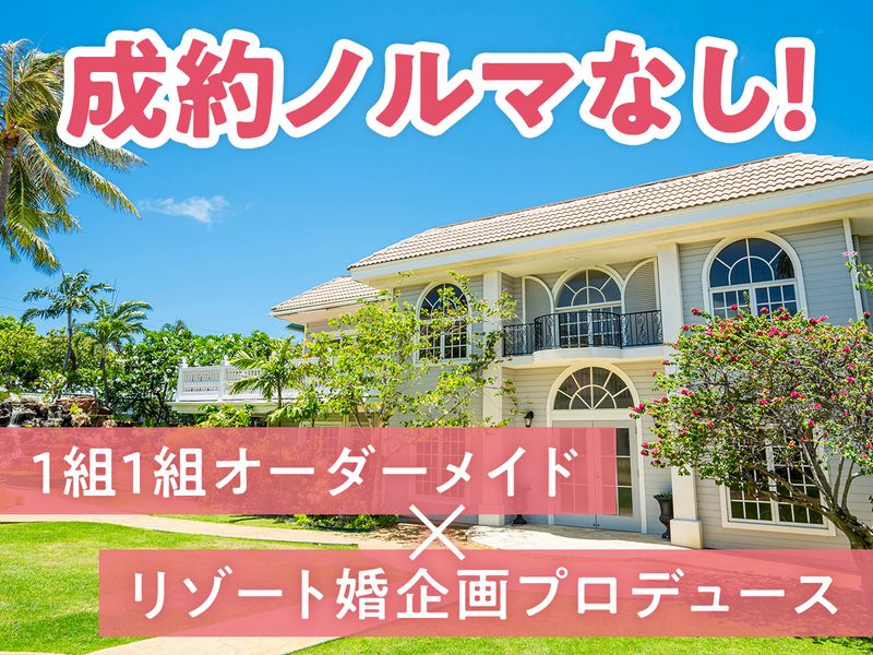アピールポイント: \ 豊富なプラン数で “お客様の理想”を叶えるご提案が可能に! / 充実した会場・設備、質の高いサービスで多様なプラン組みが当社の強みです。 オーダーメイドなのでお客様の理想の挙式に向けて、自信をもってベストな提案ができます☆彡 会場・衣装・演出のまるっと、トータルでウェディングコーディネート◎ 結婚式という“人生最大のイベント”を企画・プロデュースしていただけます! ✅チーフプランナーや管理職へのキャリアアップも目指せます ✅連休取得もOK/年末年始&夏季休暇ありでプライベートも充実 〉〉応募資格〈〈 語学力不問!第二新卒OK ブライダル業界経験者はもちろん、 イベントプランナー・企画営業・接客販売経験者も歓迎♪(ホテル、アパレル、法人営業など) 当社でお客様のベストを叶えるために、やり切れる提案をしませんか? 【産休育休取得実績アリ☆】 仕事と家庭の両立も無理なくできる職場です! 10年以上のベテランもおり、「居心地抜群」だそうです♪ 》》ハワイの結婚式場で思い出に残る結婚式をプロデュースしませんか? 是非、面接を通してフランクにお話ししましょう。 ご応募お待ちしております。