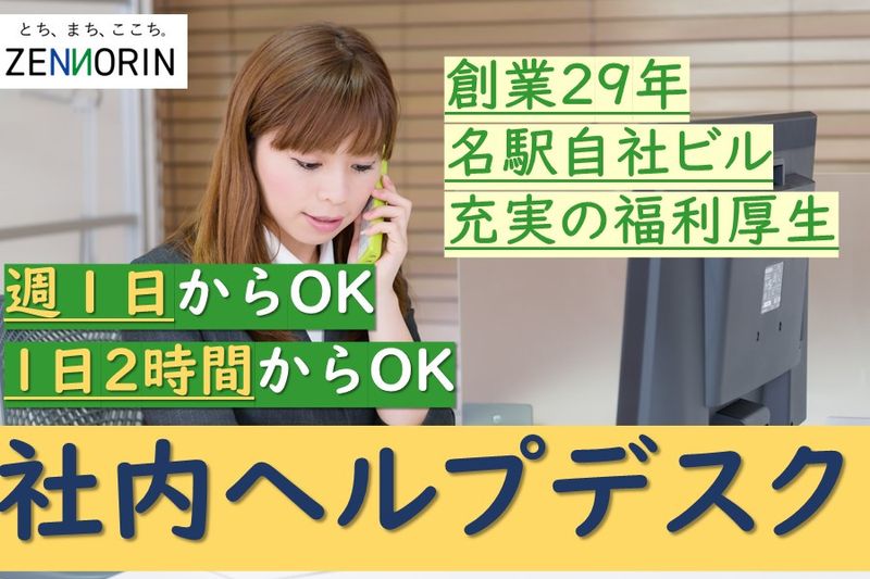 【仕事内容】 名古屋駅から徒歩圏内の新しいオフィスの不動産・建築会社の社内ヘルプデスク 2022年6月に建築した名駅本社ビルでの勤務です。 ブランクある方歓迎!第二新卒歓迎!異業種からの転職歓迎! 不動産や建築業界からの転職ももちろん大歓迎です! ■具体的な仕事内容 社内の端末(PCやスマホ)や複合機などの管理や、社員からの問い合わせ対応をお任せいたします。 ・PCの設定やアカウント管理 ・社員からの問い合わせ対応(トラブルシューティング) ・修理や入れ替え時の発注対応等 など ●ポイント ・産休や育休など福利厚生もしっかりとしている職場です。 ・資格取得支援制度あり(宅建やインテリアコーディネーターなど) ・昇給あり、賞与年2回、退職金制度、会員制リゾート施設など福利厚生充実。 ●全農林について 全農林は1996年6月創業、“みなさまの信頼と安心のパートナーとなる”をモットーに、 総合不動産デベロッパーとして宅地分譲事業および戸建住宅・ビルなどの賃貸・住宅事業を愛知県・岐阜県を中心に展開しています。 世代を越えて「ここが私たちの地元」と呼べる街を、地域の皆様と一緒に創っています。 創業以来順調に業績を伸ばし、2022年6月名古屋駅に本社ビル(自社ビル)を建築しました。 先輩スタッフは業界未経験からスタートしている方もたくさんいます。 お家づくりは営業や現場監督、職人さんだけではできません。 それを裏で支えてくれる、土地を仕入れる人や見積もりを作る人、設計をする人など様々な方の協力があって、出来上がります。 住宅は一生に一度と言われるお買いもの。 お客様は30代40代の方が多く、その方々に楽しく気持ちよく、滞りないように打ち合わせ、お引き渡しできるようサポートしてほしいと思っています。 一生に一度のお家づくりを「事務」という立場で支えてくれる人を募集しています。 まずはお話し聞いてみませんか? ご応募お待ちしております。