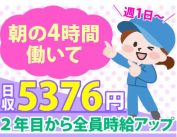 求めている人材 ・年齢不問、学歴不問、経験不問 *50代・60代のミドルシニア層、主婦、未経験、ブランクありの方活躍中 【その他こんなスキルを活かせます】 ・日常生活で家事の経験がある方 ・じっとしているよりテキパキ動くのが好きな方 ・お掃除好き、キレイ好きな方 ・早起きを活かして朝にお小遣い稼ぎしたい ・Wワークで時間を有効活用したい ・家事が得意、お掃除が好き ・趣味を楽しみたいから午前中だけ働きたい など、無理なく柔軟に働きたい方にピッタリです! 決して高度なスキルは求めていないので、お掃除に抵抗がない方であれば、問題なく取り組んでいただけます。