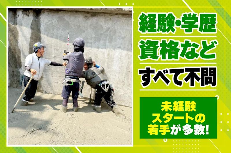 求めている人材 ◆未経験歓迎!正社員初めてでも大歓迎! ◆稼げる技術を身につけたい方大歓迎! ◆成長を支え合える仲間と出会いたい方にオススメ! 経験・学歴・資格などすべて不問。 現在、完全未経験からはじめ、 スキルアップを目指す10~20代若手が 多く活躍している会社です! ✅未経験から手に職つけたい ✅将来安定して稼げる技術を身につけたい ✅身体を動かすことが好き ✅同世代の仲間と楽しく働きたい ✅成果が残る仕事がしたい ✅人間関係が良い職場で働きたい ✅頑張りを見てもらえる職場で働きたい など1つでも多くあてはまる方が 成長を楽しみ、収入アップを目指せます! 応募のきっかけは何でもOKなので まずはお気軽にご応募してくれると嬉しいです! <こんな方はぜひご応募ください!> ・「未経験」から「職人」を目指したい ・そろそろ「アルバイト・パート」から「正社員」として腰を据えて働きたい ・「正社員」として働ける職場を探している ・「左官職人」に憧れがある ・「建設業」「左官業」の仕事をしてみたい