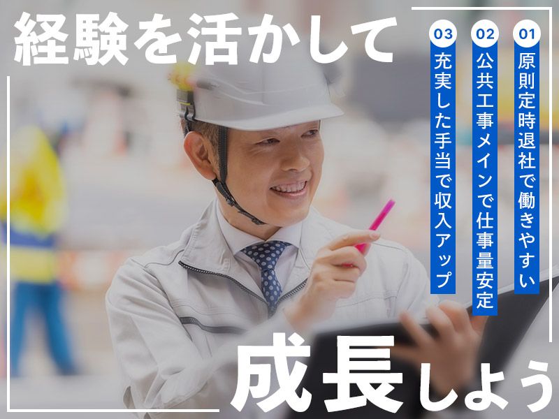 アピールポイント 【特徴&求人の魅力】 ●残業少なめで働きやすい! ┈┈┈┈┈┈┈┈┈┈┈┈┈┈┈ 原則定時退社! プライベートの時間を確保できる! ●腰を据えて長く働ける! ┈┈┈┈┈┈┈┈┈┈┈┈ 公共工事がメインのため安定した仕事量! 景気に左右されることはありません! ●安定した給与を得られる! ┈┈┈┈┈┈┈┈┈┈┈┈ 賞与は年2回支給! 充実の手当もありで収入アップ!