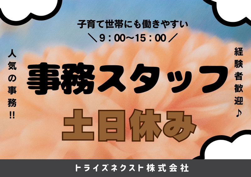 資格不問/人気の事務!!/土日お休み/働く時間相談できます/子育て世帯も働きやすい