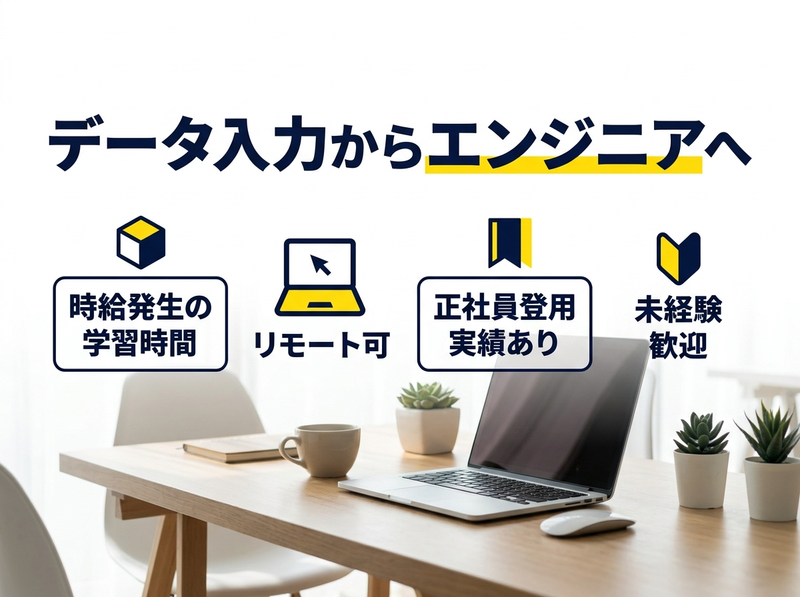 【在宅可!】データ入力|給料もらいながらITエンジニアを目指す!正社員登用あり!