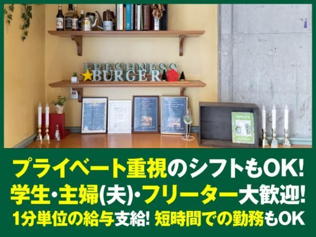 仕事情報 ● 仕事内容 \大手ならではの充実の待遇/ ◆昇給◆髪型、カラーOK(清潔感重視) ◆交通費支給 ◆お得な社割あり(全商品30%引き/規定あり) <シフトは超柔軟!働きやすい環境整ってます!> 「テスト期間はシフト減らしたい」 「平日のみ、家事と両立しながら働きたい」といった相談OK ライフスタイルに合わせて働けます◎ <初バイトにもおすすめ> バイトデビューも大歓迎! お昼の暇な時間や家事の合間は 「フレッシュネスバーガー」でアルバイト♪ フロア・キッチンスタッフとして ハンバーガーやドリンク等の調理、 店頭での接客、店内の清掃等をお願いします。 丁寧な研修があるので未経験の方でも安心! ※状況に応じて、他業務もお任せする場合があります <飲食店経験者も大歓迎> これまでの飲食店での経験を活かして、 新しい職場で輝きたい方、大歓迎です! ★下記、いずれかの経験をお持ちの方は即戦力★ 居酒屋、レストラン、バル、BAR、カフェ、寿司、 回転寿司、ベーカリー、うどん、弁当、ピザ、スイーツ とんかつ、カレー、定食屋、蕎麦屋 会社情報 大手「コロワイドグループ」の傘下で、 「3・6・5酒場」「甘太郎」「牛角」「かっぱ寿司」「温野菜」 「大戸屋」「ステーキ宮」「フレッシュネスバーガー」など 20超のブランドを全国に2500店舗以上展開。 全従業員が、安心して働ける職場環境をご用意してます!