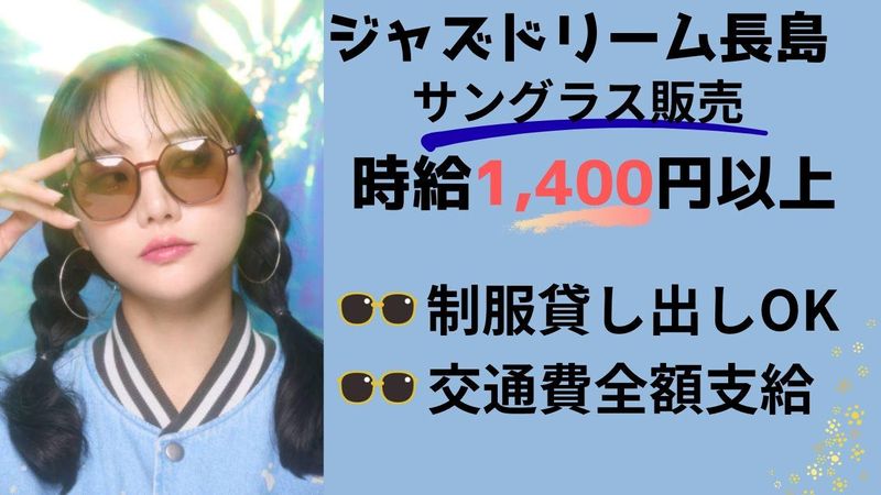 サングラスの販売スタッフ(ジャズドリーム長島)
