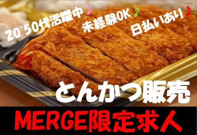揚げたての香りに包まれて♪未経験から時給1600円!日払もOK♪梅田駅直結の人気惣菜販売♪ 株式会社MERGE とんかつ・お弁当の販売 京都発の職人仕込みのとんかつ専門店。 素材と揚げたてにこだわった惣菜を販売してます! 清潔感ある白木のカウンターと上品な接客で、 リピーターも多数です☆ 【ここがポイント!】 *高時給1,600円×日払いOK *週3日~OKで働き方自由 *駅直結で通勤ストレスなし *調理なし・接客メインで安心スタート *制服貸与&研修充実 履歴書不要! ご自宅でラクラクWEB登録! 日払いでお給料はすぐGET!