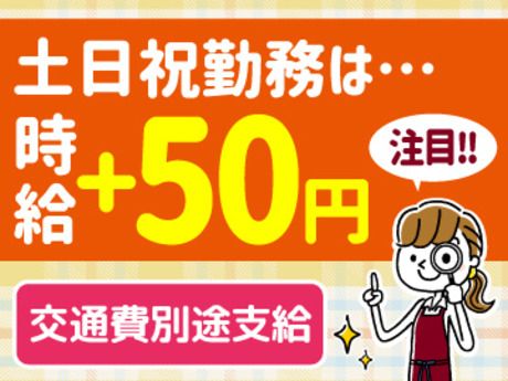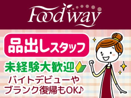 職場環境 【従業員構成】 10代・20代・30代・40代・50代・60代の男女が活躍中! ▼みんなに聞いたフードウェイの魅力POINTをご紹介します♪ (1)時給が高めで稼ぎやすい! (2)シフトの融通がきく♪ (3)日数・曜日で時給がUPする! (4)研修が丁寧で未経験でも安心◎ 【職場の雰囲気】 落ち着いた職場 協調性がある 業務外交流多い 立ち仕事 アットホーム お客様との対話は少ない 初心者活躍中 決められた時間できっちり 知識、経験不要
