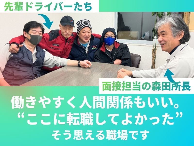 求める人材: 必須:大型免許 ※免許取得制度あり ・経験者歓迎(運送業経験者など) ・ブランクOK ・フォークリフト免許お持ちの方尚可 ・学歴不問/経験不問/未経験OK \ こんな思いを抱えている方に…/ ■「大型は続けたいけど、長距離&泊まり込みはもう限界…」 ┗ 毎日帰れて、夜は自分のベッド! 「トラックが自分の家」みたいな生活、そろそろ卒業しませんか? ■「子どもと遊ぶ時間も取れず、家族との時間が減った…」 ┗ 夜勤ナシ&決まった時間の勤務! お子様に「パパ、お泊まりのお仕事?」と聞かれるたびに胸が痛む… 「気がついたら子どもが喋ってた…」 「毎回抱っこするたびに人見知りされてギャン泣きされる…」 そんな切ない思い、もうしなくてOK! ■「今の会社、賞与も福利厚生もなくて将来が不安…」 ┗ 賞与年2回・毎期売り上げup・従業員数も右肩上がり! 「今月も当たり前にボーナスなし、貯金?できるわけない…」 「会社の売上は年々下がっている、上がるのは自分の血圧だけ。」 ここなら「次のボーナスで家族旅行行くか!」が現実に! 1つでも「これ自分のことだわ。」って思ったら、一度話だけでも聞きにきませんか?