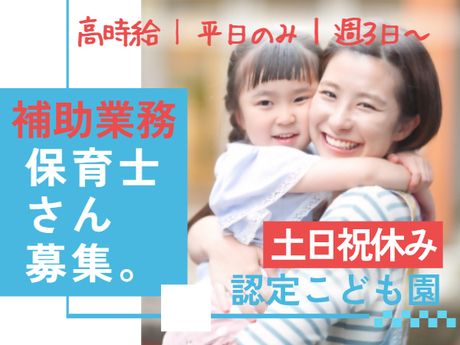 仕事内容 ■保育保育園における保育士(保育補助)業務全般 ・遊びの見守り ・オムツ交換、排泄介助 ・着替えのサポート ・給食・おやつの配膳や補助 ・保育補助業務、フリー業務 ・連絡帳や日誌などの事務作業 ・夏祭り、運動会、発表会などの企画構成 ・その他保育に付随する業務 など <保育園での1日の過ごし方> 09:00~ 登園、園児のお出迎え 09:30~ 担任の先生と一緒に保育業務の補助 11:30~ 昼食 12:00~ 午睡(幼児は遊びや音楽など) 15:00~ おやつ 17:00~ 降園 <派遣先> 【就業場所】 定員170名保育園 ※「明るく」「たくましく」「のびのびとした」子どもをめざし、ご家庭と協力しながら保育に取り組んでいます ※対象年齢:0~6歳児 <通勤方法・その他補足> ※自転車通勤OK <受動喫煙対策> あり(敷地内禁煙) ここがポイント ■高時給1550円!月収23万円以上可能 ■9:00~17:00(実働7時間15分)勤務 ■月~金曜日の平日のみの勤務をお願いします ■週3日勤務よりご相談ください ■副担任やフリーなど、クラス担任保育士の保育補助のお仕事をお願いします ■ピアノは弾けなくても大丈夫! ■土日祝はお休みです