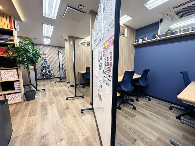 職場環境 明るく洗練された環境で、塾とは思えないオシャレでカフェのような快適空間♪学生から主婦さんまで幅広く活躍中!駅チカで安心と親しまれてます。