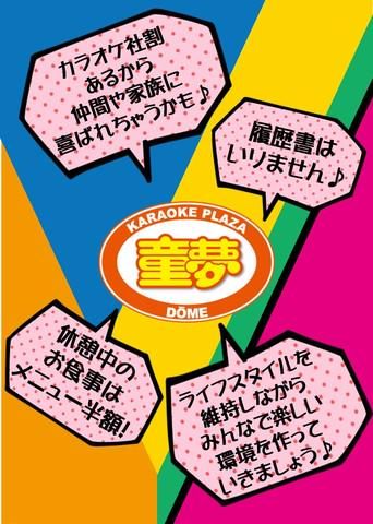 仕事内容 \\ここがポイント// ✨履歴書不要なのですぐ応募できる! ✨駅チカで通勤しやすい!お買い物にも好都合◎ ✨シフトは希望を考慮して柔軟に対応可能 ✨時給UPもあるので稼ぎたい方にもおすすめ ◇仕事内容◇ ――――――――――――――――――― ✅お客様の受付・会計 ✅飲み物や軽食の注文取り・提供 ✅簡単な飲み物づくり ✅店内清掃 など ◇弊社について◇ ――――――――――――――――――― 「カラオケプラザ童夢 鶴岡店」にて 店舗スタッフを募集! スタッフは20代~30代が活躍中♪ 勉強・部活・テスト・遊びなど 全部を充実させたい学生さんも大歓迎◎ プライベートも大切にできるように 一人ひとりのシフト希望を考慮するので お気軽にご相談ください。 カラオケやまかないの割引もあります! 応募の際に履歴書は不要。 不安に思わず、気楽に面接に来てください。
