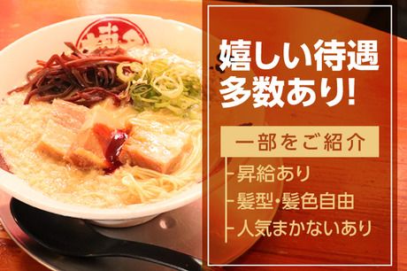 【保険制度】 雇用保険、労災保険、健康保険、厚生年金 待遇・福利厚生 【福利厚生】 *髪型・髪色自由 *交通費規定支給 *バイク通勤・自転車通勤OK *制服貸出 *人気のまかないあり *昇給あり *社会保険(法令に則る) *正社員登用制度あり *入社祝い金10万円支給(規定)