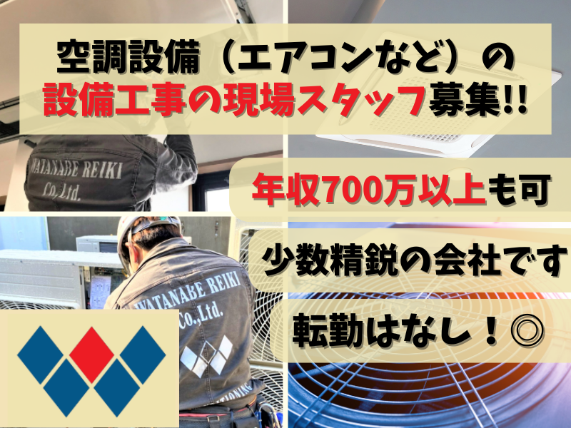 仕事内容 【設備工事の経験者の募集です】 ================== 経験次第で、年収700万越えを目指せる 当社で、一緒に働きませんか? ================== こんな方はぜひともご応募ください!! ◆電気工事士のご経験のある方 ◆設備工事のご経験のある方 ◆現場作業員のご経験のある方 当社は、ビルや、大型店舗 病院などの新築現場で 空調設備(エアコンなど)の設置や、 メンテナンスを行っている会社です。 社員数5名と小さな会社ですが、30年以上の歴史を誇る、安定感抜群の会社です。 >>当社で働くメリットは<< ✅ 年収700万円越えを目指せる給料体系 ✅ 少数精鋭で、意見の言いやすい環境 ✅ スキル次第でどんどん挑戦できる 今回のお任せしたいのは、 リーダーポジションになります。 楽な仕事ではありませんが、 頑張りはしっかり還元する報酬体系なので スキル次第では年収700万越えも目指せます。 小規模の会社なので、 あなたの意見も通りやすく 働きやすい環境だと思います。 今後の会社の成長に 力を貸していただけるような方 ぜひともご応募お待ちしております!! 【具体的な仕事内容】 ・新築現場での電気・空調設備設置 ※エアコンの取替えなど ・各種設備の修理 ・点検 ・メンテナンスなど