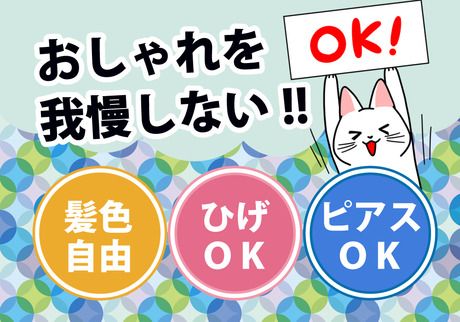 時給1300円にアップしました!日勤のみ!土日祝休み!髪色・ピアスOK!自分らしく働ける!