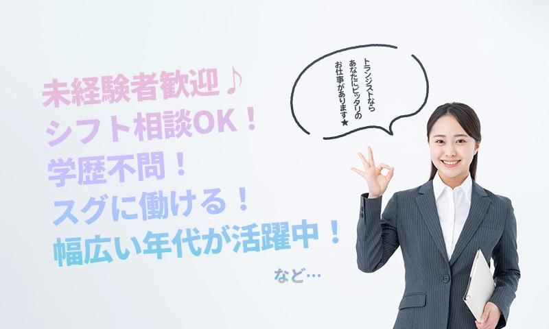 選考プロセス ~お仕事スタートまでの流れ~ ①応募フォーム or お電話でエントリー! ②担当スタッフより、お仕事や条件のご説明♪ ③担当と一緒に現地見学へ!職場の雰囲気も確認できます◎ ④「できそう!」と思ったら、そのまま就業スタート! まずは「話だけ聞いてみたい」でもOK! お気軽にお問い合わせください♪ 【登録地】 株式会社トランジスト 所在地:福岡県北九州市小倉北区西港町84-8 応募受付先