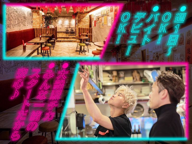 仕事内容: 。.。:+* ゚ ゜゚ +:。.。:+ ゚ ゜゚ +:。.。.。:+ ゚ ゜゚ *+ \<4月15日>大船店 NEW OPEN ❗❗/ 上下関係ゼロ!みんな一緒にスタート☆ バイトで一生の仲間に出会えるかも⁉✨ 。.。:+* ゚ ゜゚ +:。.。:+ ゚ ゜゚ +:。.。.。:+ ゚ ゜゚ *+ ✋「春からバイトはじめたい!」 ✋「同年代とワイワイ働きたい!」 ✋「バイトで友達増やしたい!」 そんな欲張りなアナタにおすすめっ✨ この春NEW OPENする 『福包酒場(フーパオサカバ)大船店 』で、 ぜんぶ叶えちゃってください♪ ╭━━━━━━━━━━━╮ メンバー全員「一期生」✨ オープニングの大量募集❗❗ ╰━━v━━━━━━━━╯ 先輩・後輩の壁、一切ナシ! 「こんなお店にしたい」 「こうやったら絶対バズる!」 なんてアイデアも出し合えちゃう♪ これから集まるメンバーみんなで、 楽しくて、居心地のいい、 最高のお店をつくっていきましょう☆彡 ただ働くだけのバイトじゃなく、 気づけば「今日バイトだ、楽しみ」って思える場所に。 いつの間にか、隣にいる仲間が “最高の友達”になっているかも!! 新しい場所で、ワクワクする出会いが いっぱい待ってます♪ ✨ ここがポイント!  ̄ ̄V ̄ ̄ ̄ ̄ ̄ ̄ ̄ ̄ ̄ ✅ 口コミ高評価!大人気店の新店募集! ⛅ 大船駅スグの神アクセス ✨ 髪色・ネイル・ピアス…見た目自由♪ ⏰ 週1日・1日3h~でシフトも自由すぎ ☕ 激うままかない無料で食費浮く ➰履歴書不要だから準備ゼロで応募可 「学校帰りにサクッと」 「しっかり入ってガッツリ稼ぐ」 どっちも大歓迎! ✨ お仕事内容  ̄ ̄V ̄ ̄ ̄ ̄ ̄ ̄ ̄ まずは元気な挨拶からスタート! ホールは接客マナーや言葉遣いなど 基本から丁寧に教えます♪ キッチンは簡単な盛付けなどから。 料理初めての人も大丈夫! できることから少しずつお任せします◎