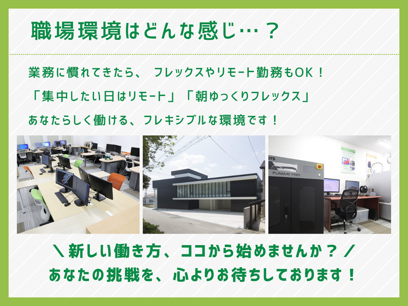 求めている人材 【必須条件】 高校卒業または短期大学卒業以上 何らかの設計実務経験をお持ちの方 (業界・分野、経験年数は一切問いません!) 【歓迎する人材】 ✅ 経験者歓迎! ✅ Uターン・Iターン大歓迎! ✅ ものづくりに興味がある方 ✅ 機械設計エンジニアとして手に職をつけたい方 ✅ チームで協力して働きたい方 ✅ 愛知県に根差して働きたい方 【こんな業界・職種からも活躍中!】 製造業/自動車ディーラーの販売職 ウォーターサーバーの営業 サービス業・接客業 高校教師 飲料機メーカー営業/公務員 【スタッフの声】 ■ワークライフバランスもバッチリ! (Kさん・30代男性・2年目) 妻の出産に合わせてIターン。 以前は事務をやっていましたが、 手に職を付けたいとの思いで 未経験歓迎の求人を見て、 思い切ってジョブチェンジ! 技術者として働きながらも、 育休を取ることもでき、 公私ともに充実した毎日を過ごしています。 ■エンジニアとしてより成長するために (Kさん・20代男性・1年目) 前職では生産技術に携わっていましたが、 より面白い仕事がしたいと思い転職。 まだまだ勉強することは多いですが、 とてもやりがいがあり、 やればやるほど仕事が面白くなっています! 先輩社員とも気軽に話が出来て、 仕事から趣味まで話すことが出来るところは魅力です。 このように、未経験で入社した 20代の若手から、30代以上の方も しっかりと活躍中です! 性別不問・経験は問いません。 興味があればぜひご応募ください!