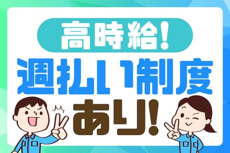 【保険制度】 雇用保険、労災保険、健康保険、厚生年金 待遇・福利厚生 【福利厚生】 ■社会保険完備 ■車・バイク・自転車通勤OK(無料駐車場あり) ■事前見学OK ■食堂有 ■休憩室有 ■即日勤務OK ■週払いOK(規定)