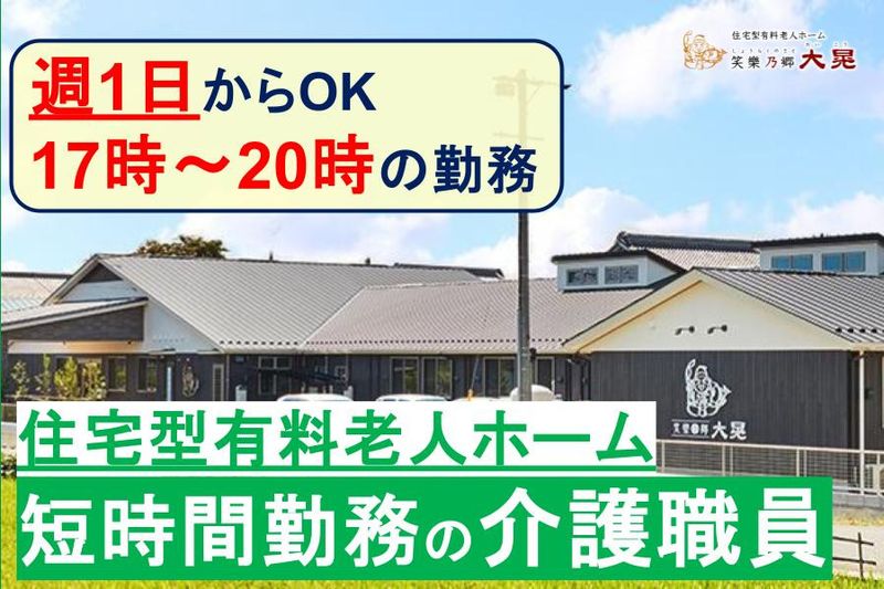 【仕事内容】 週1日からOK!Wワーク・副業もOK!ナーシングホームの介護職員募集! プライベートの時間も確保でき本業との合間時間での勤務が可能です! \ブランクや自信が無い方も安心サポート充実/ 全員が自信を持って介護業務を一緒に頑張れるようサポートさせていただきます! ご利用者様に寄り添った柔和なケアができる環境です。 ■具体的な仕事内容 ナーシングホームにおける入居者様の介護業務全般をお願いします。 ・フロア管理 ・服薬管理 ・就寝誘導、介助 など ●ナーシングホーム笑樂乃郷 大晃(しょうらくのさと だいこう) 大晃グループでは、介護・看護・事務すべての職種で有給休暇が「半日単位」から取得可能です。 お子さまの学校行事や急な用事にも合わせて柔軟にシフトを調整できるので、子育て中の方も安心して働けます。 また、私たちの合言葉は「助け合い・支え合い」。 スタッフ同士が自然とフォローし合える風土があり、実際に多くの子育て中のママがイキイキと活躍しています。 ●実務未経験の方も歓迎です 先輩スタッフが、一から丁寧にサポートします。ブランクのある方も、もちろん安心して働けます。 ●お気軽にお問い合わせください。 ぜひご応募くださいね。 いきなりの面接は不安な方には施設見学も大歓迎です。 働き方の相談や、仕事内容のご質問などのお問合せもお気軽にご連絡ください。 入職時期が2、3ヶ月後の方も遠慮なく、施設見学を承っています。先ずはメールでお問い合わせ下さい。 【求人ID-DKS6】