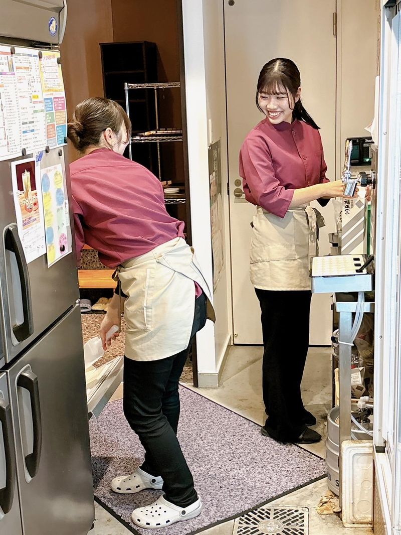 仕事内容 お客様のご案内やオーダー取り、料理の配膳・下膳やドリンク作り等の業務をお願いします! なんと言ってもウチの魅力は優しい女性社員と店長です!(笑) スタッフのほとんどが女性でみんな和気あいあいと働いています。 学生スタッフからも「家から近くて通勤も苦じゃない!」と評判なんですよ。 カウンター8席、テーブル4席、お座敷1部屋のお店です。 ホール業務になれてきたら、キッチン(調理補助)もお願いすることもあります。