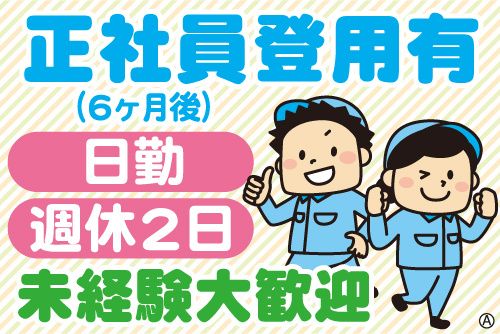 仕事内容 <新着>6ヶ月後に正社員登用のチャンス! 正社員雇用で安定して働きたい方は是非! 工場でのマシン操作・検査の業務です。 未経験者も大歓迎の簡単作業! 【ポイント】 ・正社員登用有(6ヶ月後) ・未経験者も大歓迎 ・日勤で週休2日制 ・働きやすい環境! ・週払いOK(規定有) ・職場見学OK! ・WEB面接orご自宅近くでの出張面接OK!(お気軽にご相談ください) 製造正社員希望の方は必見! 未経験から正社員を目指せます。 長く安定して働けます。 【段ボール製造のお仕事内容】 ダンボールを製造する工場での機械操作、 製品の検査作業をお願いします。 ・ダンボールを機械にセット ・機械を操作する加工作業 ・商品のダンボールのキズなどを確認 ・箱詰めや梱包作業 など 難しいお仕事はありません。 ダンボールは5kgぐらいまでなので、 重たい物は少ないです。 女性スタッフも活躍中! 体への負担も少ないお仕事です。 先輩スタッフによる丁寧な指導があるので 製造業・マシンオペレーターなどの 未経験者も安心して始められます。 経験が浅い方、ブランクがある方も大歓迎! もちろん機械オペレーターや製造業務の 経験がある方は前職を活かせます! 紙製品以外の食品や機械部品などの工場や 倉庫内の軽作業、製造・加工・組立、 検査・検品、仕分け・ピッキング、 梱包などの経験者も大歓迎! 正社員以外のパート・アルバイトでの 経験や短期の派遣スタッフ経験もOKです。 【正社員として長期・安定】 最初は派遣スタッフとしてスタートします。 6ヶ月後に正社員への登用チャンス!! 長く安定して働きたい方にオススメです。 ぜひ正社員を目指して活躍しませんか! 【通勤アクセス】 勤務地は所沢市東狭山ヶ丘になります。 車(マイカー)・バイク通勤OK! 交通費は規定内にて支給いたします。 まずはお気軽にお電話または 応募フォームよりご連絡ください! <電話応募・問い合わせ先> TEL.04-2929-0050 ティーエムエス所沢支店ではその他に たくさんのお仕事があります。 短期・長期のお仕事がいろいろ! 倉庫内軽作業、仕分け、ピッキング、 検査、梱包、箱詰め、包装、シール貼り、 フォークリフト作業、工場での製造など さまざま! 工場系以外の一般事務などの事務職、 データ入力などもあります。 元々パート・アルバイトで活躍していた方も 前職を活かせるお仕事が満載!