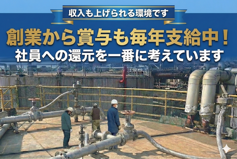 仕事内容 < 経験者歓迎!日給1.3万円スタート > < スキル・資格・経験をしっかり評価 > < 少数精鋭の環境で頑張りを公平還元 > < 資格支援あり!スキルアップも可◎ > < 直行直帰OK/市原市内は送迎も有 > 【 安定性バツグンの会社です 】 株式会社髙嶋工業は、 2024年に設立した新しい会社です。 石油プラント構内のタンク洗浄を中心に、 配管の組み立てや大型機器の設置などを 一貫して手がけています。 大手企業の一次請けとして、 安定した受注基盤を持ちながら、 現在は7名の職人を中心に、 少数精鋭で現場を運営中! 今回はさらなる事業拡大と、 現場力の強化を目的とした増員募集。 特に、玉掛け・ユニック操作、 配管洗浄などの経験がある方は、 即戦力としてお迎えします。 「経験に見合った待遇で働きたい」 「裁量のある職場を求めている」 そんな方にピッタリのポジションを ご用意してお待ちしています。 【 ご担当いただく業務内容 】 ■高圧洗浄機を使った 石油プラント内タンクのジェット洗浄 ■洗浄に使う機材(ポンプ・ホースなど)の 設置・配管組み立て作業 ■使用後の設備の解体・清掃作業 ■発電機の設置・ユニック車操作・玉掛け ■新人への軽作業指導や補助 < 知識ゼロからのスタートもOK! > 洗浄の準備から片付け・撤収まで 業務の幅は広いですが、 1つ1つの作業内容や注意点などは イチからしっかり教えていきます! ―* 技術を活かして即戦力化も可能 *― すでに現場経験のある方は、 得意分野から即戦力としても活躍可! 配管作業や玉掛けなど 技術を発揮できる場面が多いため、 不安なく働けるのが魅力です。 ―* 昇給・資格手当で成長を還元! *― 年1回の評価制度により、 現場での頑張りや後輩への指導姿勢、 技術力などを公平にしっかり評価。 資格取得支援も整っており、 スキルの幅を広げながら、 収入アップも目指していけます。 < 技術も努力も見逃さない少人数体制 > 現在在籍している職人は7名! 全体で10名という少人数のチームです。 現場では20代〜40代のスタッフが活躍中で 年齢や役職に関わらず、 意見を出しやすい雰囲気があります。 誰がどの作業に強いのか、 どんな努力をしているのかを リーダーがしっかり把握しているため、 評価もスピーディかつ公平です。 「現場で信頼される存在になりたい」 「もっと自分の裁量を活かしたい」 という方には最適な環境です。