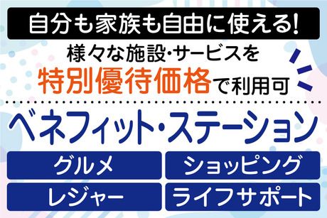 【保険制度】 雇用保険、労災保険、健康保険、厚生年金 待遇・福利厚生 【福利厚生】 ・社会保険完備 ・交通費全額支給 ・バイク通勤OK(規定) ・ガソリン代補助あり ・無料送迎バスあり ・有給休暇 ・制服貸与 ・食堂、売店あり ・喫煙室あり ・結婚祝金、出産祝金、こども手当、入学祝金、退職金制度などの福利厚生が充実(規定) ・紹介キャンペーン ※ご紹介くださった方1名につき5万円を進呈(規定) 【ベネフィット・ステーションの利用が可能】 ベネフィット・ステーションとは、 様々なシーンでご利用いただける 総合型福利厚生サービスです。 映画鑑賞やホテルディナー、宿泊施設 などの余暇・レジャー関連をはじめ、 日常で使えるフィットネスや 育児・介護支援、ライフサポートなど 約140万件以上の幅広いメニューを お得な価格で利用できます。 <サービス例> ・全国40,000以上の宿泊施設 ・全国30,000店舗以上の飲食店 ・全国約7,700ヶ所のスポーツクラブ など スタッフさんはもちろん、ご家族の方もお好きなだけ利用できます。