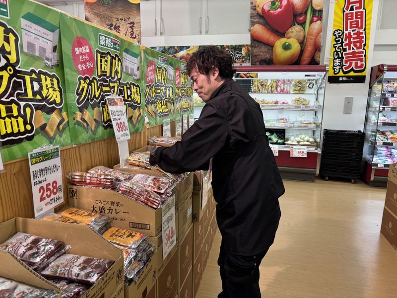 職場環境 \話題のお店で働くチャンス!/ テレビでの話題の業務スーパー! あなたのアイディアでお店が より良くなるかも!? 社員が中心となって、互いにアイデア を出し合いながら店舗運営をしている 自由度の高い店舗です! 喫煙所:なし(敷地内全て禁煙) 敷地内全面禁煙