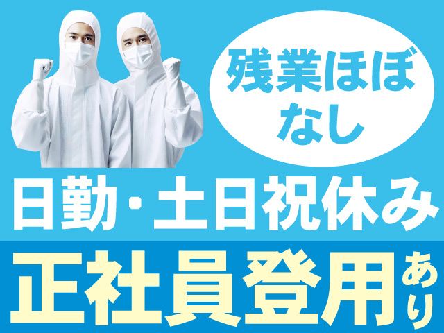 仕事内容 <注目ポイント> ・正社員登用制度あり ・日勤&土日祝休み ・残業ほぼナシ ・9:00~18:00までの勤務 ・20代~30代の男性活躍中 ・暦通りのお休みだから、プライベートも充実 ・未経験OK ・研修制度充実 <お仕事詳細> 小型部品で重量物はありません。 20代~50代の幅広い年代の方が活躍中! 必要な資格や経験は必要ありません。 子育て世代の方にも嬉しい土日祝休み、残業も少なめのお仕事です。 ライフワークバランスを重視したい方もご自身の時間を大切にしながらお仕事できます! 「オススメポイント」 ◆日勤帯で無理なく働ける! 人気の日勤専属のお仕事です。 残業もほぼありませんので、 無理なく働ける環境をお探しの方必見です! 残業なしもOK! 残業が難しい方もお気軽にご連絡ください。 ◆嬉しい土日祝休み! 基本的には土日祝なので、 ご家族との予定も合わせやすい! プライベートの時間もしっかり取れます。 年間休日も125日あります。 <おすすめポイント> ・ひとりでモクモク作業 ・車での休憩OK ・駐車場は近場にあり ・食堂完備 ・お弁当持参OK こちらのお仕事に興味のある方、派遣のお仕事をお探しの方はお気軽にお問い合わせ下さい。 あなたのご応募お待ちしております。