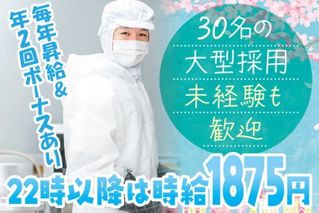 仕事内容 ■夜勤で月収33万以上/土日祝休みの安定ワーク \ 夜型の方にぴったり / ・夜勤専属で月収33万円以上可能 ・土日祝休みでプライベートも確保 ・深夜時給1875円でしっかり稼げる ■仕事内容 健康栄養お菓子(ウエハース)の製造サポートをお願いします。 ●お菓子についた粉をエアで飛ばす ●コゲ・割れなどのチェック ●材料の計量 ●材料を機械へ投入 基本は流れに沿ったルーティン作業。 覚えることも多くありません。 新人さんにはサポートで担当がつくため、 未経験でも安心してスタートできます。 今回は【30名】の大型採用です。 ■夜勤だからこそのメリット スタッフからはこんな声を。 ・「平日昼間に役所や病院へ行ける」 ・「ジムや買い物が空いていて快適」 ・「家族の予定に合わせやすい」 夜勤専属の魅力は、 昼間の時間を自由に使えることです。 ■働きやすい環境 ・工場内は空調完備で一年中快適 ・制服はクリーニング済みを使用(返却するだけでOK) ・2時間ごとに休憩あり/広い休憩室あり さらに待遇面も充実。 ・賞与年2回 ・毎年6月に定期昇給あり (1年で+120円、長期で+300円の実例あり) 今回は当社の【契約社員】としての採用。 安定して働きたい方にもおすすめです。 ■長く続く職場のリアルな声、集めました。 ●40代男性 「とにかくガッツリ稼げます!」 夜勤なので収入が安定して、前職より生活に余裕ができました。 ●30代男性 「貯金が一気に増えました」 昼間の時間も使えるので、生活のバランスも取りやすいです。 【 主任からのメッセージ 】 「最初は緊張して当たり前ですが 1日~1週間で慣れてきますよ」 14年働くスタッフもいるなど、 人間関係の良さと働きやすさで長く続く職場です。