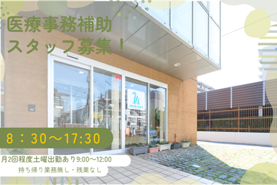仕事内容 「忙しすぎる医療事務から、 少し余裕のある働き方へ――。」 患者様一人ひとりに丁寧に向き合える、 落ち着いた環境のクリニックでの勤務です。 慌ただしさに追われるのではなく、 無理なく続けられる 働き方を大切にしています。 残業はほとんどなく、休日もしっかり確保。 これまでの経験を 活かしながら、自分の時間も 大切にしたい方に適した職場です。 '・。。・'・。。・'・。。・'・。。・'・。。・'・。。・'・。。・'・。。・'' ■お仕事内容 地域密着型クリニックにて、 医療事務業務全般をお任せします。 具体的には… ・受付対応、患者様のご案内 ・会計業務 ・電話対応 ・紙カルテの管理 ・レセプト業務 …など レセコンはメディコムを使用。 これまでのご経験に応じて 業務をお任せしていくため、 無理なくスタートできます! ■この仕事のポイント ・患者数は1日20~25名程度 ・落ち着きのある環境 ・一人ひとりに丁寧に対応できる職場 ・焦らず働ける業務量 「正確さ」「丁寧さ」を 大切にしたい方にぴったりです♪ '・。。・'・。。・'・。。・'・。。・'・。。・'・。。・'・。。・'・。。・'' ■働きやすさについて ・事務作業は勤務時間内に完結 ・残業はほとんどなし ・持ち帰り業務なし ・勉強時間が取れる可能性も! 日々の業務負担が少なく、 無理のないペースで働ける環境です。 ■職場の特徴 医療法人が運営する 安定したクリニックで、 落ち着いた雰囲気の中、 スタッフ同士も相談しやすい環境です。 長く働くことを前提とした 職場づくりがされており、安心して キャリアを築いていくことができます。 '・。。・'・。。・'・。。・'・。。・'・。。・'・。。・'・。。・'・。。・'