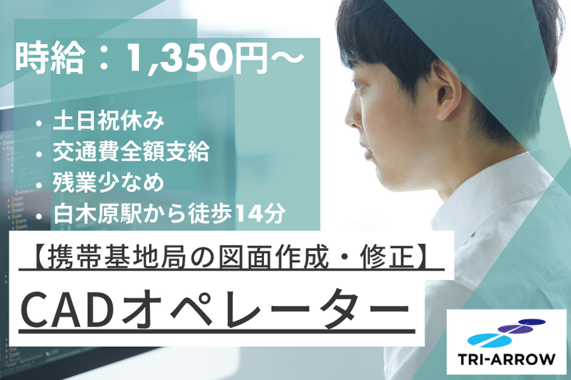 ■仕事内容 設計資料作成の補助|CAD初心者歓迎|事務経験者もOK 通信インフラ関連/設計・コンサル資料補助業務/時給1,200~1,400円 女性活躍中(20代前半~30代半ば) 綺麗な建物での就業&残業は月に10時間程度です。 CADの業務経験が無くても、学習レベルまたはCAD利用検定などお持ちの方歓迎します。 ◆仕事内容 設計部門の補助スタッフとして、資料作成やCADサポート業務をお任せします。 設計担当のアシスタント 図面作成補助(AutoCAD) 報告資料、進捗管理資料などの作成 コンサル業務のサポート補助 【月収例】 時給1,200~1,400円 約255,500円(時給1,400円×実働7.50h×21日+時間外20時間)+交通費 ※月収例は一例であり、保証するものではありません。 【交通費】 通勤交通費の支給あり(当社規定による) 【服装】 オフィスカジュアル 【引継】 OJT 【職場環境】 休憩室・更衣室あり 【通勤手段】 自転車通勤OK:駐輪場無料 【喫煙環境】 敷地内禁煙(喫煙場所あり) 屋内禁煙(喫煙室なし) 勤務開始時期: 即日勤務可能 ■仕事の特徴 服装自由 即日勤務OK 長期歓迎 主婦・主夫歓迎