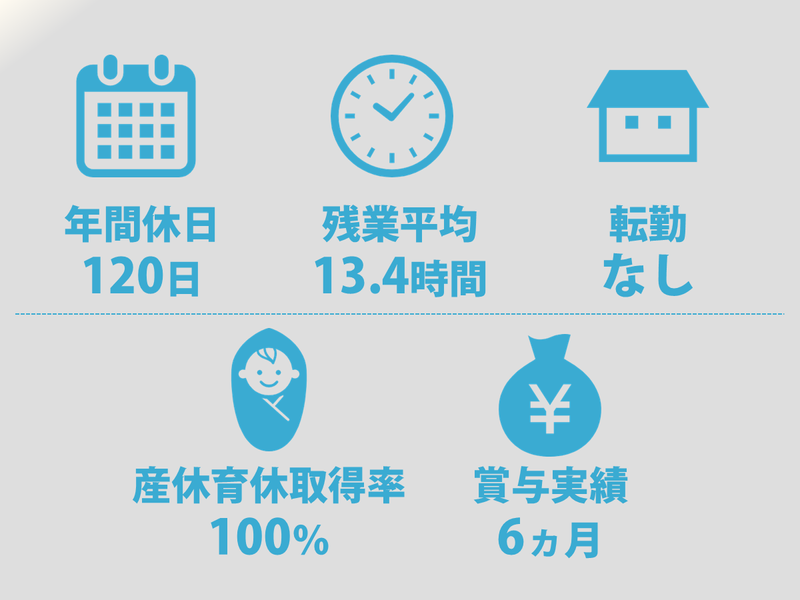 休日休暇 ◆完全週休2日制(土日祝休み) ◆年末年始休暇(7日) ◆夏季休暇(お盆5~7日程度) ◆GW休暇(5日程度) ◆年次有給休暇 ◆育児休暇取得実績あり 2025年育児休暇取得率100%(男女ともに) 休みはしっかりありますので プライベート充実させたい方、 ワークライフバランス重視の方 も安心して働ける環境です✨