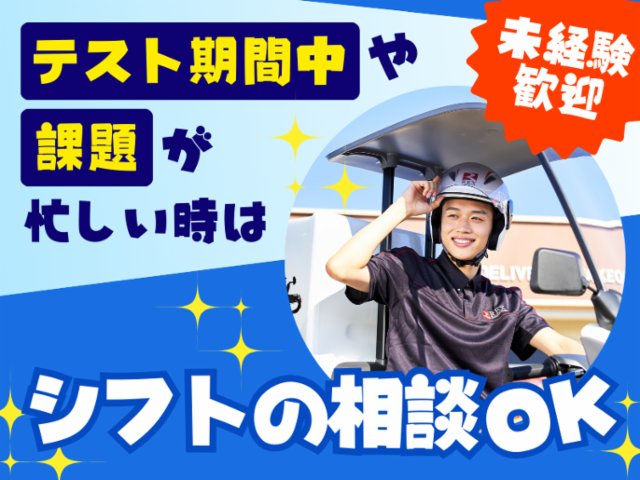 資格 未経験歓迎☆Wワーカーも主婦(夫)も歓迎☆ 高校生デリバリーも募集中! ● 授業・サークルと両立したい! ● 空き時間をうまく活用したい! ● 家事や子育ての合間に働きたい! ● かけもちバイト(Wワーク)希望! →全部OK☆ 【必須】原付免許または普通自動車免許 (原付免許のみの方は取得から6ヶ月以上)