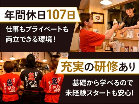 仕事内容 ◆ ◆ ◆ 注目ポイント ◆ ◆ ◆ ~~~~~~~~~~~~~~~~~~~~ \\街の日常に寄り添う、気軽な魚の食堂 // 家庭の味、普段使いの「定食」を大切に。 挑戦して⇒成り上がる⇒主役になれる! ~~~~~~~~~~~~~~~~~~~~ ★未経験でも月給32万円スタート! ★入社祝金あり!お給料1ヶ月分を支給! ★成果・実績は即給与に反映します! ★調理経験なしの状態から育てます! ★5年目で年収700万の先輩もいます! ★月8~9日休みでメリハリもバッチリ ◆ ◆ ◆ 「丸富食堂」はこんなお店! ◆ ◆ ◆ 「美味しい魚を、日常の食卓へ。」 旬の定食で、街の日常を支える食堂! 刺身や煮魚など、家庭的な「魚定食」を中心に 素材の味を活かした、丁寧な手仕事が自慢。 「美味しい」の笑顔に寄り添う、日々の追求! 「魚をさばけるようになりたい」 「人を笑顔にする接客が好き」 そんな想いがあれば、経験は一切不問! 包丁の持ち方から、旨い魚の見極め方まで イチから丁寧に教える環境が整っています。 人生変えたいなら、 まずは丸富食堂で「魚をさばく技術」から 新たなキャリアを始めてみませんか? ◆ ◆ ◆ お任せするオシゴトは… ◆ ◆ ◆ まずは店舗スタッフとして、 ホール・キッチン業務からスタート! 接客・調理の基礎を身につけながら、 将来的なキャリアとして店舗運営にも 携わっていただきたいと思っています! “作業”ではなく、 “お店をつくる側”として イチから成長できるポジションです。 【具体的には】 ■ご案内、オーダー対応、配膳 ■お刺身、定食の調理補助・仕込み ■盛り付け、食材管理、発注業務 ■レジ業務全般 ■店内清掃 まずは上記業務を基本に、 ステップアップ後は… ■原価管理、売上管理 ■スタッフ育成、マネジメント ■他、付帯する店舗運営業務 などをお任せしたいと考えています。 実力次第で店長・幹部候補へと ステップアップすることが可能です。 「ただ働く」だけではなく、 「お店を任される存在」へ――。 本気で成長したい方をお待ちしています! ◆ ◆ ◆ キャリアアップ=収入に直結! ◆ ◆ ◆ 年収700万円(40歳・5年目) ⇒月給50万円+各種手当 年収600万円(35歳・2年目) ⇒月給45万円+各種手当 年収500万円(27歳・初年度) ⇒月給40万円+各種手当 このように、経験や役職に応じて 明確に年収が伸びていきます! 年齢や過去の肩書きではなく、 “これからどれだけ本気で取り組むか”。 頑張りを正当にスタッフへ還元する 組織の風土があるからこそ、 中途入社でも高収入を目指せます。 挑戦する人に本気で応える会社です。 ◆ ◆ ◆ 当社について ◆ ◆ ◆ フーデックスグループは、 国内外で多彩な飲食ブランドを 展開する外食企業です。 ラーメン業態「屯ちん」をはじめ 和洋中の業態をプロデュースし、 ブランド力を武器に海外出店も加速。 現場主義と育成力を強みに、 成長を続けるフードカンパニーです。