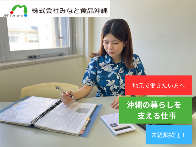 仕事内容 \\✨この求人のアピールポイント✨//  ̄ ̄V ̄ ̄ ̄ ̄ ̄ ̄ ̄ ̄ ̄ ̄ ̄ ̄ ̄ ̄ ̄ ̄ ̄ ✅未経験者も大歓迎! 研修とOJTでしっかりサポート◎ ✅沖縄県内300店舗以上のコンビニに 商品を納品♪ ✅無料駐車場130台完備で通勤も安心★ ──────【仕事内容】────── 食品工場にて、事務業務全般を 担当していただきます。 <<お任せしたいお仕事はコチラ!>> 先輩や上司がしっかり教えるので、 ご安心ください♪ ⏩受注数の確認~ラベル出力 └ 受注数の確認、製造数量を入力し、 商品に貼るラベルを印刷します。 日々の製造に欠かせない、 とても大切なお仕事です。 ⏩新商品の準備もお手伝い! └新しい商品が出るときは、 その商品の作り方(レシピ)や 表示ラベルの情報を登録します。 ⏩データ入力でスムーズな生産をサポート └専用のシステムやExcelを使って、 様々な情報を入力します。 正確さが求められますが、 丁寧に指導しますのでご安心ください。 ⏩食品表示のチェック └皆さんがコンビニなどで目にする 食品表示に間違いがないか、 内容をチェックします。 お客様に正しい情報をお届けするための 重要な業務です。 ⏩食材の情報管理と共有 └使う食材の情報を管理し、 必要な部署へ連動します。 ⏩伝票処理 └日々の業務で発生する書類を整理します。 ⏩電話対応 └取引先の方や社内の関連部署からの 電話に対応。 最初は簡単な取次ぎから始め、 徐々に慣れていきましょう♪ 充実の研修制度で、 \\あなたをプロの事務スタッフに!// ━━━━━━━━━━━━━━━━━━ 「事務の経験がない」 「PC操作に自信がない」という方も大丈夫! 入社後各部署へ研修に入り会社の流れを 学んでいきます。 その後はOJTで、先輩が一つずつ 実践的な仕事のノウハウを伝授します。 あなたのペースで成長できる環境です。 ✅会社について  ̄ ̄ ̄ ̄ ̄ ̄ ̄ ̄ ̄ ̄ ̄ ̄ ̄ ̄ ̄ ̄ ̄ ̄ ̄ ̄ 1989年の設立以来、コンビニ向けの オリジナル商品を製造する食品メーカー として、手作りデザートをはじめ、 おむすび、寿司、弁当などの米飯類、 惣菜を製造しています。 自社製麺設備も完備しており、沖縄そばや パスタなどの麺も手がけています! 現在、沖縄本島、宮古島、石垣島に工場を 展開しています。 手作りの良さを残しながら、衛生面にも 徹底的にこだわり、安全・安心な 商品づくりを追求しています! 【経営理念】 一、顧客のニーズに応える商品づくり 二、企業の発展を追求し社会に貢献する 三、従業員の生活向上と明るい社風を築く あなたが携わった商品がお店に並び、 お客様が「おいしい!」と 喜んでくださる姿を想像してみてください。 きっと「自分が携わったものが、 こんなにもたくさんの人に届いているんだ!」 と、大きなやりがいを感じられるはずです。 ⭐応募を迷っているあなたへ⭐  ̄V ̄ ̄ ̄ ̄ ̄ ̄ ̄ ̄ ̄ ̄ ̄ ̄ ̄ ̄ ̄ ̄ ̄ 「応募したいけど、どんな会社なのかな?」 「働く環境ってどんな感じ?」 と思っている方もいるかもしれません。 私たちは、あなたが安心して 一歩を踏み出せるように、応募前に 会社のことをもっと知る機会を ご用意しています! ✨工場見学 実際の職場の雰囲気や 仕事風景を直接見られます。 ✨WEB説明会 遠方の方や忙しい方向けに、 個別で詳しく説明します。 自宅から気軽に参加OK! ✨社員との面談 働く先輩に仕事の楽しさや大変なことを 直接質問できます。 これらの機会で「ここで働きたい!」を 確信してください★ まずは「話を聞きたいな」くらいの 気持ちで、お気軽にお問い合わせください! あなたの「知りたい!」を応援します! ⭐新しく採用サイトがオープンしました⭐ 応募をご検討の方はぜひご覧ください! https://minato-recruit.com/