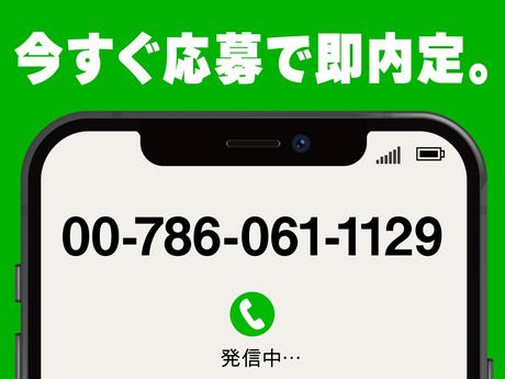 選考プロセス 電話応募で、その場で研修日時のご予約ができます。 あっという間にお仕事決定♪ ▼ご応募はこちらから▼ 【00-786-061-1129】 【問合せ先について】 問合せ先:0078-6061-1129 <TEL受付時間>平日9:00~17:00、それ以外の時間帯はWEBにて24時間受付中! 応募方法 ▼ご応募はこちらから▼ 【00-786-061-1129】 面接なし!来社なし!電話1本で完結! 簡単な確認のみで即内定! 自宅にいながら内定GET&履歴書不要!