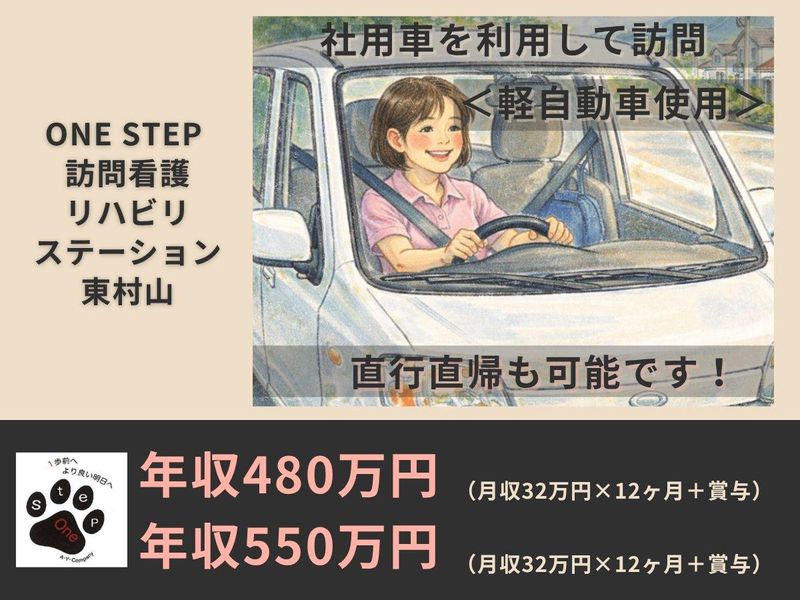 仕事内容 ■この求人のポイント ✔ 土日祝休み/年間休日125日 ✔ 残業ほぼなし(月2時間程度) ✔ 子育て中スタッフ多数 ✔ 急なお休みも「お互いさま」文化 ✔ 訪問未経験OK(同行あり) ✔ 人間関係のストレスほぼゼロ ■仕事内容 「病院の働き方、正直しんどい…」 そんな方に選ばれている職場です。 One stepでは、 **“1人ひとりにしっかり向き合う看護”**ができます。 ▼具体的には 提携している障がい者施設の利用者様を中心に訪問します。 ・バイタルチェック ・服薬管理 ・医療処置 ・ご家族へのアドバイス ・記録(スマホ・タブレット) ※訪問件数:1日5~6件 ※社用車あり(AT限定OK) ■未経験でも安心の理由 ・最初は必ず同行訪問 ・不安やスキルに合わせて調整 ・いきなり1人で任せません ▶実際に訪問未経験スタートが多数活躍中 ■この職場が選ばれる理由 ◎人間関係で悩まない 訪問は基本1人。 病棟のような気疲れ・人間関係ストレスなし。 ◎子育てと両立できる ・急な発熱・学校行事 → 柔軟対応 ・「休みにくい空気」一切なし ▶ママ看護師が長く働いています ◎働き方が整っている ・土日祝休み ・年間休日125日 ・残業ほぼなし ▶ 家庭・自分の時間も大切にできます ◎オンコールも柔軟 「できる日だけ」でOK 無理な割り振りはありません