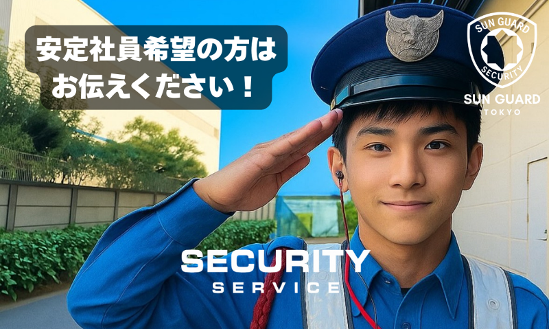 アピールポイント: ▶▷仕事内容 南砂町にあるショッピングセンターの駐車場セキュリティ! ✅️出入口の車両誘導 ✅️駐輪場で自転車台数のカウント ✅歩行者の誘導 ショッピングセンターを利用するお客様が安全に出入りできるようサポートするお仕事です。車だけでなく、歩行者や自転車利用者も安心して過ごせるように見守ります。 ⭐夜勤あり!(希望者のみ) 定期清掃や機械点検などが発生した際の監視業務! こちらの業務は椅子に座って行えます♪ ▶▷給料 日勤 最大15,750円 (臨警夜勤 13,278円~) ⭐️別途交通費全額支給!! ⭐️早く終わっても8時間分の給料は支給されて直行直帰OK◎ ▶▷勤務時間例 日勤 8:00~19:30(実働7H~7.5H) (夜臨警勤 23:00~翌9:30(基本座哨勤務)) 【弊社"Sun-guard secrity"について】 ▷ALSOK綜親会の東関第4支部長により35年以上続く会社で、 入社後の離職率は5%という優良会社です。 この度、既存メンバーの卒業があったため若干数 新たに加わってくれる仲間を大募集です!! ⭐️稼げるキャリアアッププラン 基本的には日勤のお仕事がメインですが 稼ぎたい方は臨警である夜勤のお仕事や 撮影の警備をプラスしてさらに稼ぐことも可能です◎ アナタの希望の働き方を気軽にご相談ください! ⭐️しっかり休める休憩時間 お昼休憩の1時間以外にも 合計1時間~1時間半の休憩が定期的に回ってくるから 負担なく働いてもらうことが可能です◎ ⭐️未経験OK 基礎から学べる研修アリ!未経験からスタートした先輩が大半! 学生・主婦主夫・Wワークの方も歓迎!! 前職が飲食店、youtuber、職人さん、警察官、運営系の方などなど... 様々な人が働いています。20代~70代の幅広い年齢層が活躍中! ⭐️短時間勤務も大募集中⭐️ 8:00~18:00 → 12,000円 13:00~21:00 → 10,500円 ※ご自身の生活リズムに合わせて、時短勤務も可能です◎