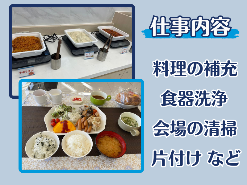 仕事内容 ―**――**求人POINT!**――**― ✅未経験OK!パートデビューも歓迎! ✅週3日~OK! ✅長期で安定して働ける方、大歓迎! ✅主婦さん中心に活躍中! ✅車通勤OK! ―**――**――**――**――**― 家族やお子さんの世話と家事で 自分の自由な時間がない… 毎日がその繰り返しだと なんのために頑張っているか わからなくなってきますよね。 朝の時間を、少しだけ 「自分のため」に使いませんか? ちょっとだけ早起きを頑張って、 4時間だけの朝食会場のお仕事。 盛り付け・準備・片付けだけなので 難しいことはありません。 でも、シンプルなお仕事でも 朝の空気の中で体を動かせば、 シャキッと気持ちが整ってきます。 仕事が終われば、 カフェで読書をしたり 勉強やジムを始めてみたり。 余裕をもって自分の時間を満喫。 実際に働くスタッフからも、 「1日が長く感じる」 「生活リズムが整った」 といった声が多数上がっています。 短時間でも、しっかり家計の足しに なるのも魅力の一つ。 今よりさらに生活を削るんじゃなく、 自由度を広げる気持ちで お仕事を選んでみませんか? ー 【仕事内容】 ✔ おかずやパンを大皿に盛り付ける ✔ 料理や備品の補充 ✔ 使い終わった食器を下げて洗浄機へ ✔ 会場の簡単な清掃や整え作業 ✔ 食材の管理(発注や納品確認) など 難しい調理はありません。 「家でやっていることに近い」と 感じる方がほとんどです。 接客も少なめなので、 お客様には「おはようございます」と 挨拶できれば十分です。 ⏩未経験&長期勤務、大歓迎!  ̄ ̄ ̄ ̄ ̄ ̄ ̄ ̄ ̄ ̄ ̄ ̄ ̄ ̄ ̄ ̄ ̄ ̄ 丁寧な研修とサポート体制があるので、 初めての方も安心。 長く安定して働ける職場を 探している方にもピッタリです。 「家計の足しに」 「自分のお小遣いに」 「健康維持や気分転換に」 あなたのペースで、無理なく始めてみませんか? 【応募方法】 - ✨直接採用担当とお話ししたい方 →電話での応募大歓迎! 027-324-1045 までお気軽にお問い合わせください! ✨【応募】ボタンから応募の方 →エントリー後、担当者からご連絡差し上げます。