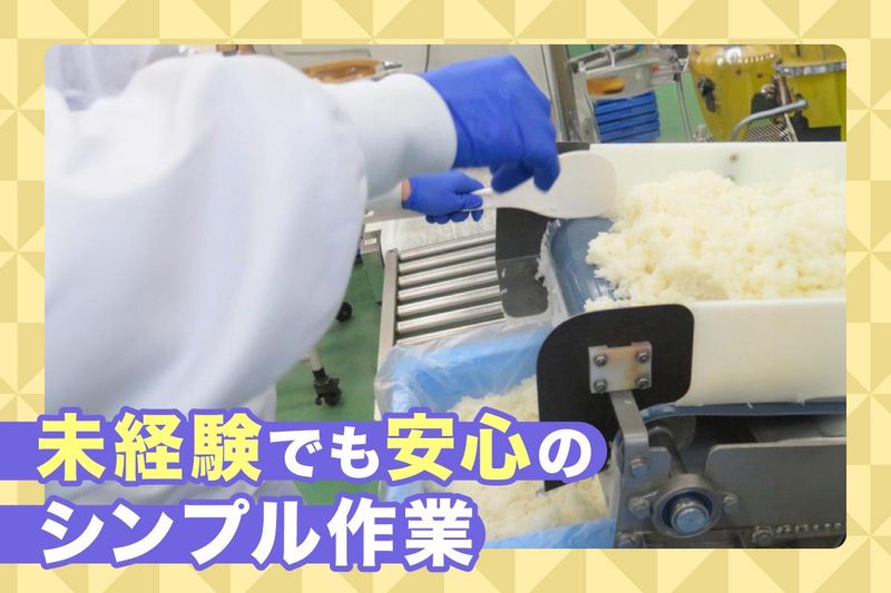 仕事内容 ==================== (( 覚えやすい2ステップのお仕事 )) イチから丁寧にお教えするので 未経験スタートの方でも安心です◎ ==================== ▼▼お任せするお仕事は??▼▼ ~~~~~~~~~~~~~~~~~~~ 【step1】炊き立てのご飯を計量 【step2】専用のコンテナ容器に入れる ~~~~~~~~~~~~~~~~~~~ *上記のお仕事の後には・・・ ・フタをしてプラスチックバンドで梱包 ・コンベアを使用した製造ラインによる 流れ作業 ・ご飯を入れたコンテナは 台車に載せて出荷 などのお仕事もあります! 特別な知識や経験が無くても、 無理なく始められるお仕事なので 工場で働くのが初めての方でも 安心してスタートできます◎ (( このお仕事の魅力をご紹介! )) ★夜勤なので嬉しい高時給1550! ★週5日勤務でしっかり稼げる! ★未経験・ブランクがあっても、 シンプル作業で覚えやすい!